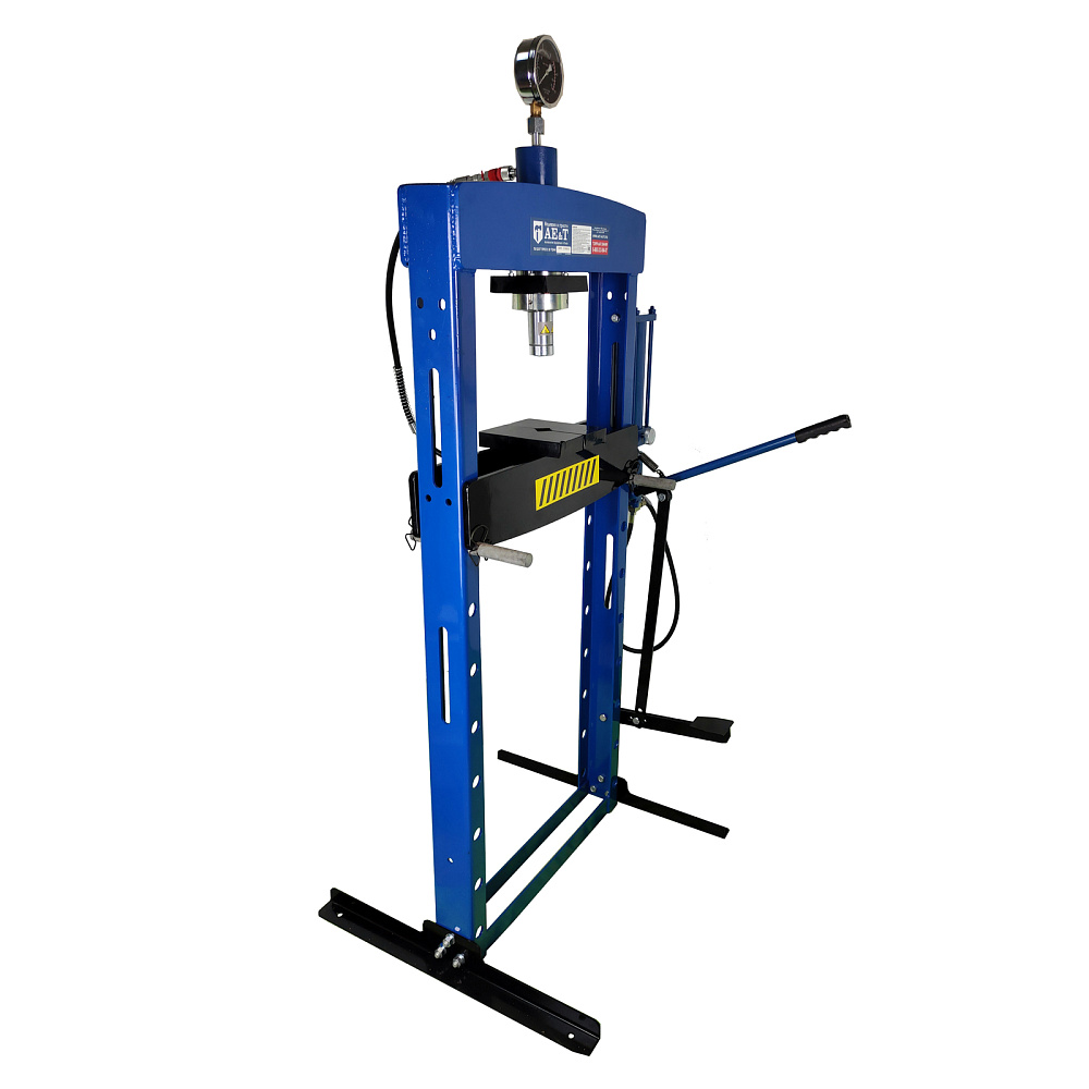 Данная модель отвечает всем требованиям современных российских автомастерских: она прочная и долговечная за счёт сварной рамы, для работы предусмотрено целых три способа эксплуатации – с накачкой рукоятью, ножной педалью или через пневматический рукав. Именно поэтому в случае неполадок или проблем с электроэнергией производство можно продолжать без затрат времени. Большой, легко читаемый манометр позволяет точно дозировать усилие.