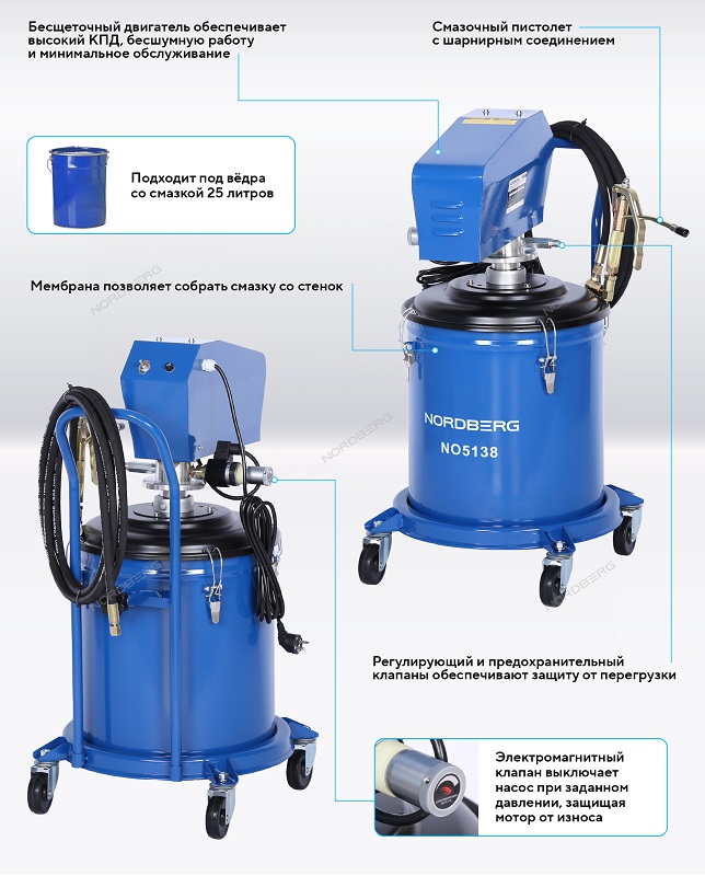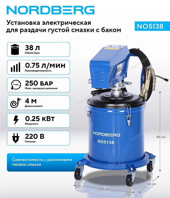 NORDBERG NO5138 — профессиональная электрическая установка для раздачи густой смазки. Идеальное решение для автосервисов, мастерских и производственных предприятий.