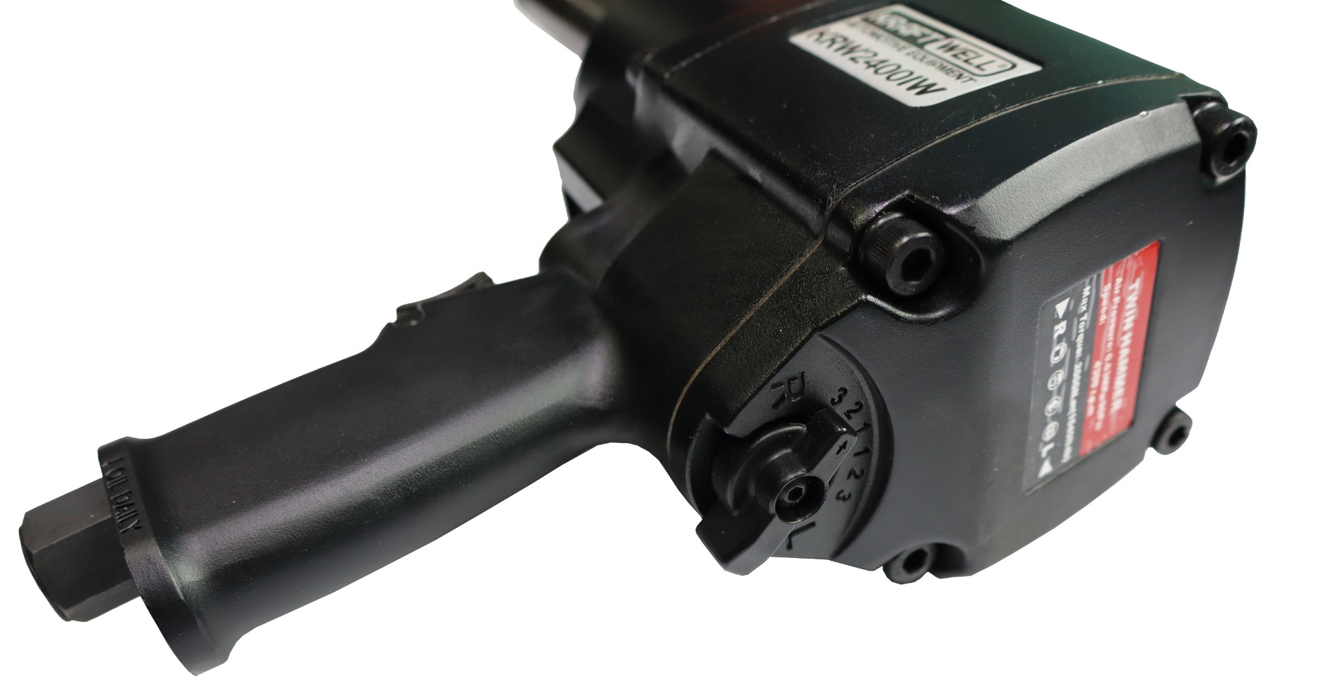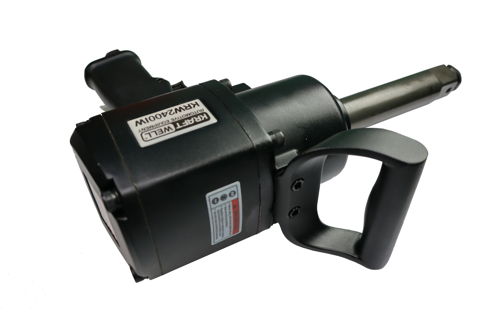 Пневматический гайковерт KRAFTWELL, модель KRW2400IW с ударным механизмом “TWIN HAMMER” и системой смазки под давлением развивает крутящий момент 1800 Нм. Размер посадочного квадрата составляет 1”, что позволяет работать с ударными головками до 33 мм. Воздушный мотор оснащен качественными подшипниками, торцевыми пластинами из кованной стали и тщательно обработанными компонентами для обеспечения плавной работы и максимальной мощности. Корпус гайковерта выполнен из высококачественной прочной стали и рассчитан на длительный период эксплуатации.