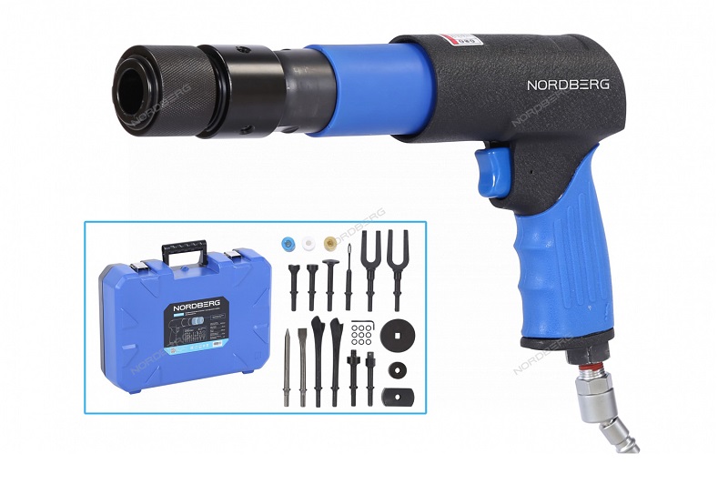 Пневмозубило 250 мм, с комплектом насадок, в кейсе, 20 пр. Nordberg NP5070K1 характеристики