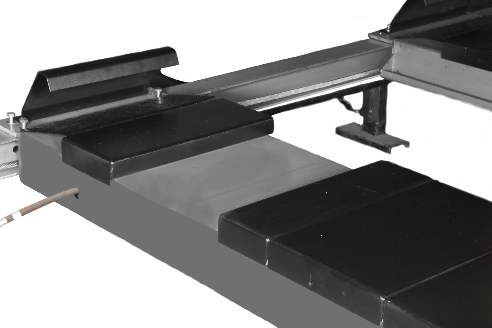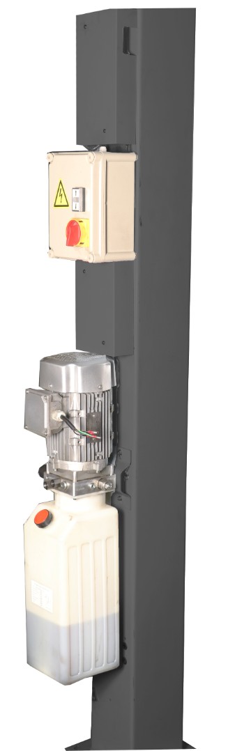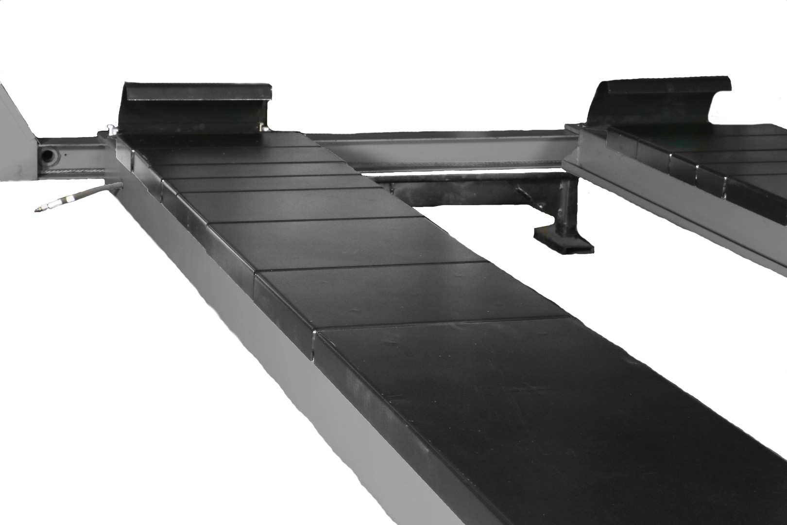Четырехстоечный подъемник для проведения работ по регулировке углов установки колес (РУУК) совместно со стендами "сход-развал" по технологии 3D. Отличительная особенность подъемника заключается в возможности обслуживания легковых автомобилей, внедорожников и легкого коммерческого транспорта, благодаря удлиненным платформам и регулируемому расстоянию между передними поворотными кругами и задними сдвижными пластинами. Все управление подъемником, в том числе и пневматическим приводом замков безопасности, осуществляется с центрального пульта расположенного на колонне. Плавность подъема и опускания достигается за счет применения высококачественных гидравлических компонентов.