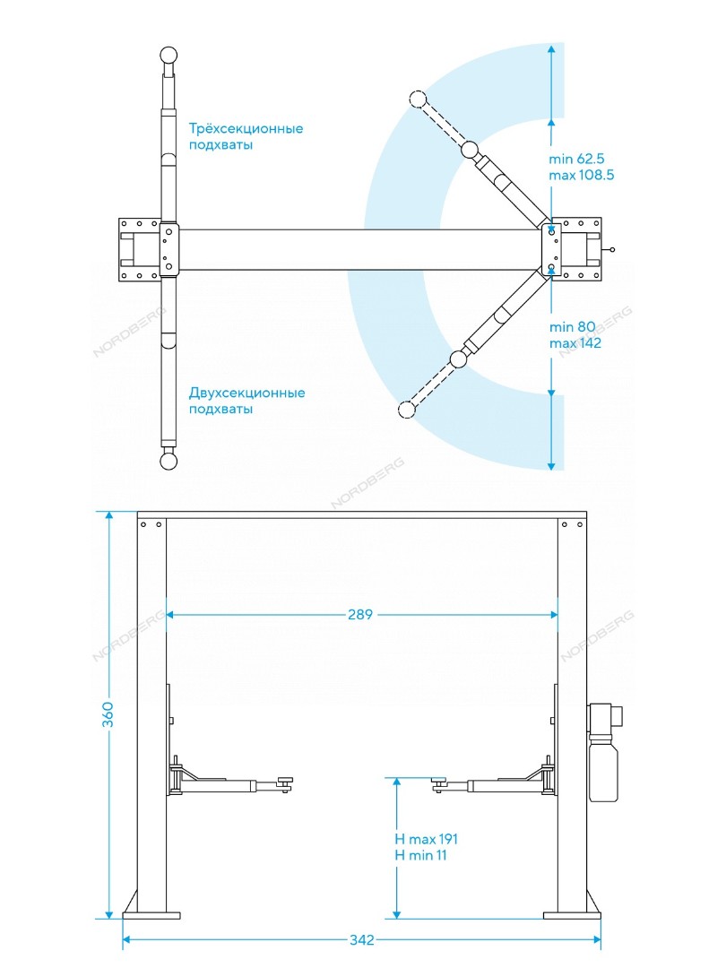 Электрогидравлический двухстоечный подъемник 4 т. Nordberg N4120H-4B_3+2_380 характеристики