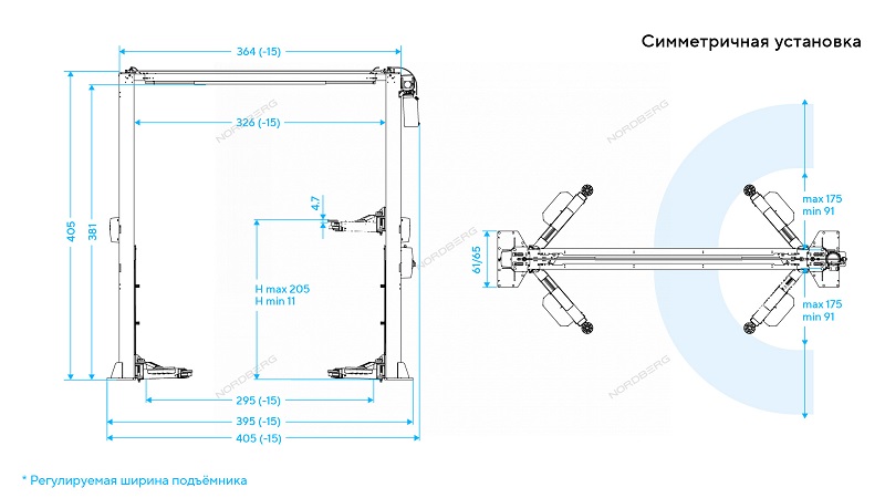 Электрогидравлический двухстоечный подъемник г/п 4.5т Nordberg N4125H-4,5G характеристики