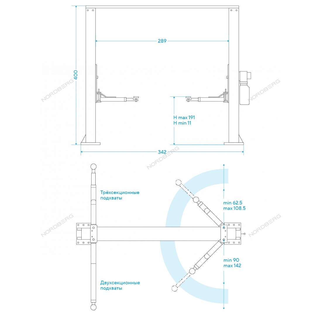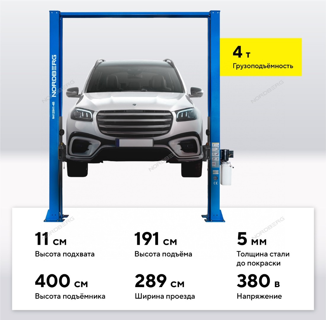 Электрогидравлический двухстоечный 4 т H=4 м, 380 В, синий Nordberg N4120H1-4B_3+2_380 характеристики