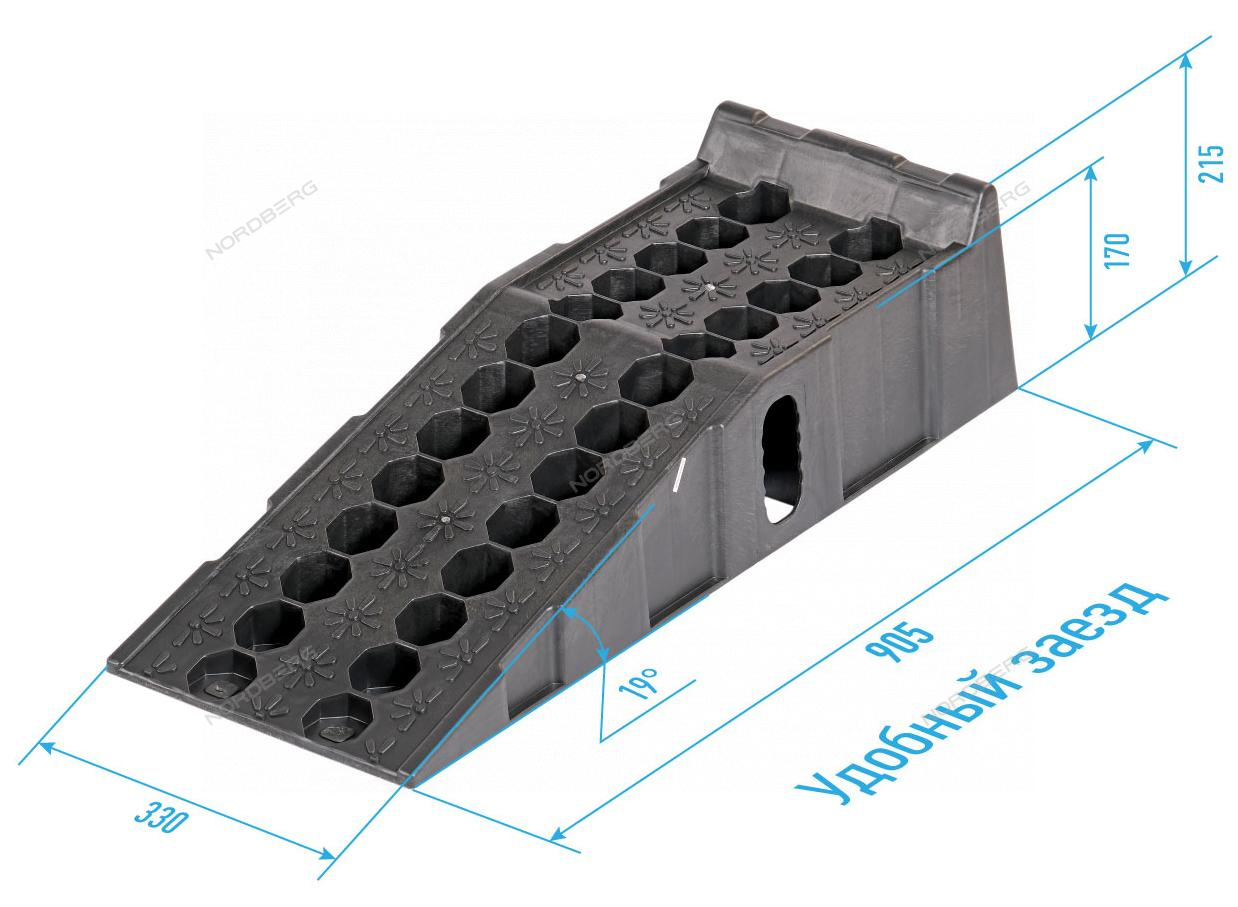 Высота подъема авто: 175 мм. Трапы предназначены для автомобилей с общей максимальной грузоподъемностью 5 тонн (каждый из трапов по отдельности выдерживает 2.5 тонн).