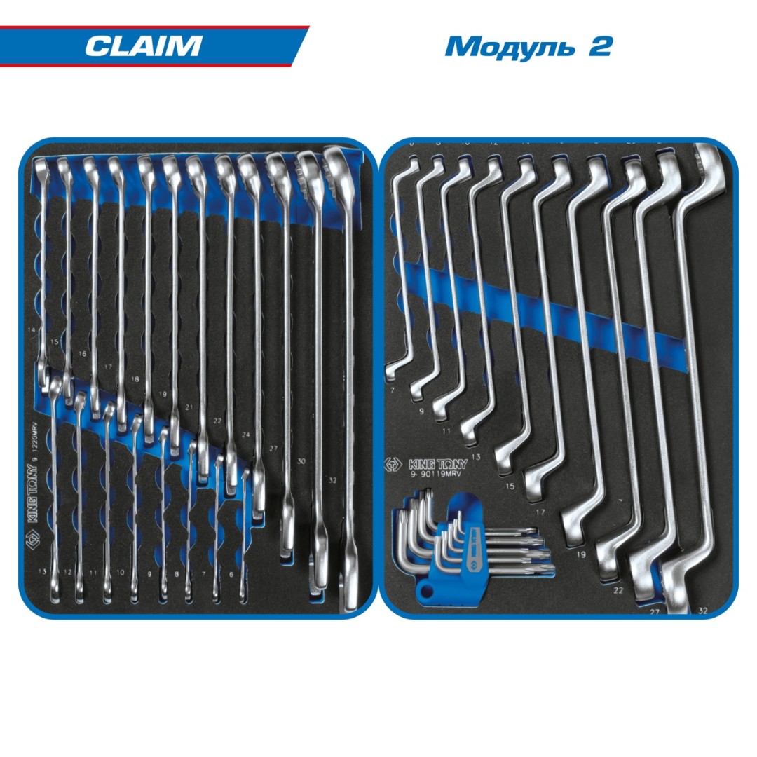 Стандартизация размеров ложементов позволяет разместить наборы на ваше усмотрение в любом варианте организации рабочего пространства – по типу, назначению или частоте использования. Вы всегда будете иметь под рукой тот инструмент или приспособление, которое вам необходимо в данную минуту, а ячейки ложементов позволят содержать набор в полном порядке.