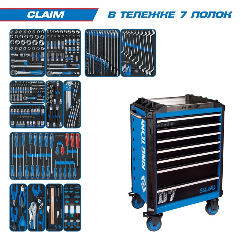 Набор инструментов "claim" в синей тележке, 286 предметов king tony 9sq31-286mrv характеристики