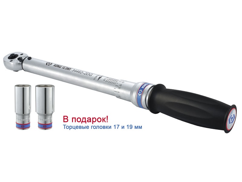 Динамометрический ключ 1/2", 60-340 Нм, для левой и правой резьбы, футляр, в комплекте 2 торцевые головки KING TONY P34462-2DG характеристики