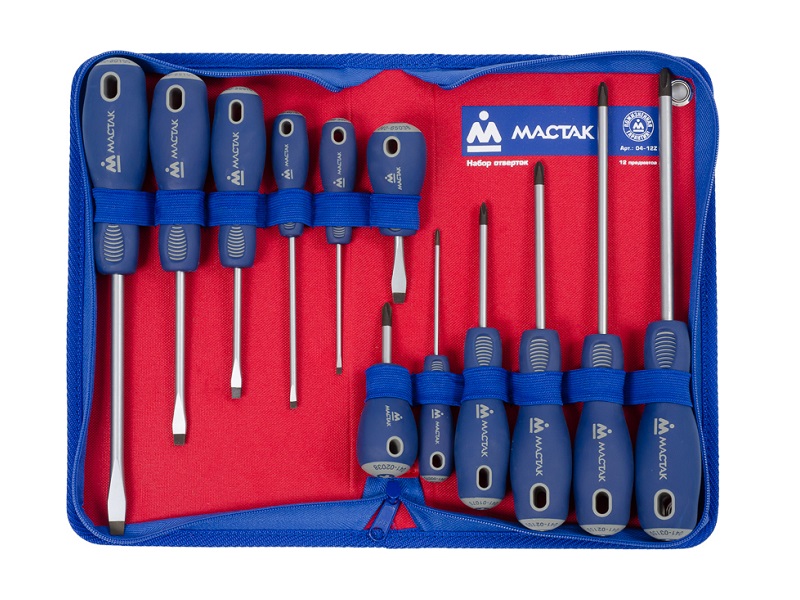 Набор отвёрток в футляре на молнии, 12 предметов МАСТАК 04-12Z