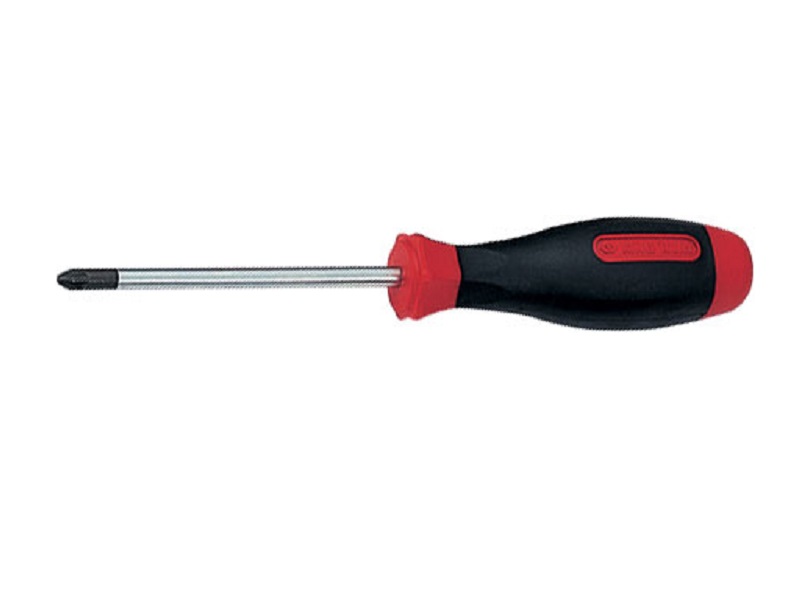 Рукоятка отвертки имеет широкий круглый «затылок» без острых граней, а ближе к стержню - более узкий участок для передачи высокого крутящего момента.