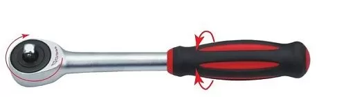 Реверсивная трещотка с храповым механизмом отличается простотой и удобством в применении. Трещоточный механизм ключа позволит работать им, не отрывая от закручиваемой детали. Резиновая накладка на ручке не позволяет инструменту скользить. Имеет вращающуюся ручку.